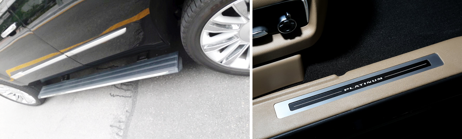 이번 에스컬레이드 플래티넘에 새롭게 도입된 1열 혹은 2열 문이 열리면 자동으로 내려오는 크롬 재질의 ‘전동식 사이드스텝’은 탑승자를 에스코트함과 동시에 패밀리카로 이용하는 많은 고객들에게 꿀아이템으로 보인다.
