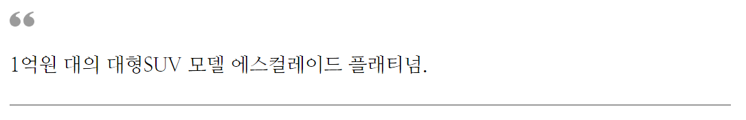 에스컬레이드라는 모델이 경쟁모델에 비해 한 발 앞선 존재감이 있었다면, 에스컬레이드 플래티넘은 두 발 이상 앞으로 나가지 않았을까?