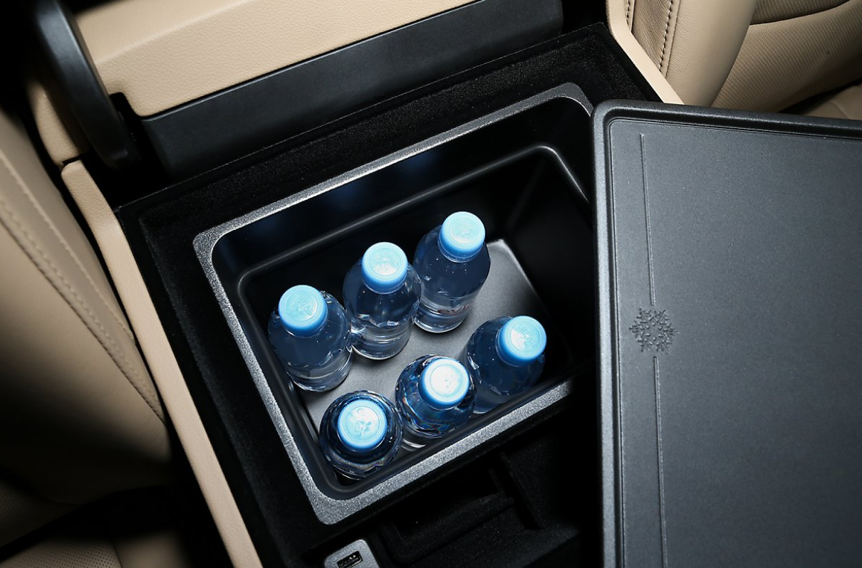 센터 콘솔 쿨러는 콘솔의 표면 온도를 냉각에 적당한 3℃~ 4℃를 유지하고, 500ml 크기의 병 6개를 담을 수 있는 공간으로 탑승자 전원에게 제공할 음료를 보관 가능하다.