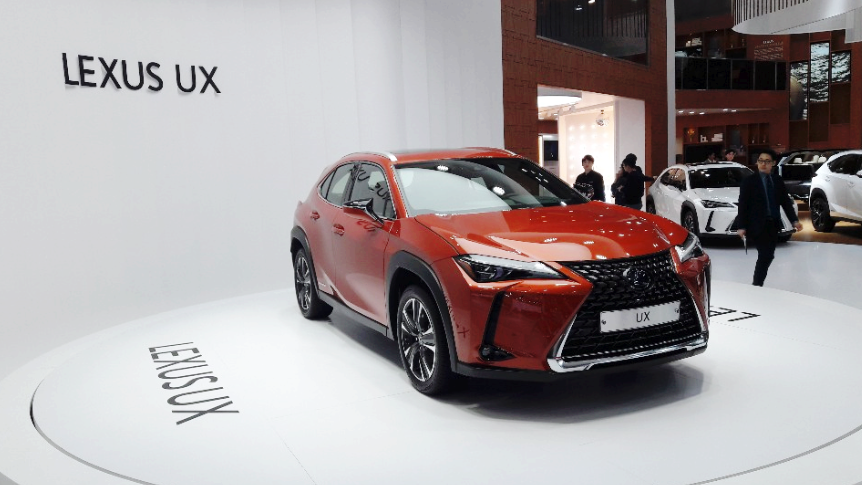 2019 서울 모터쇼에서는 렉서스 최초의 콤팩트 SUV인 ‘렉서스 UX’가 전시되어 있다.