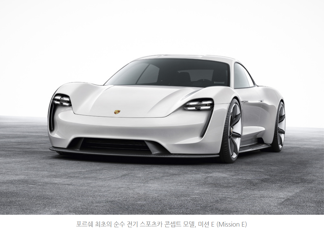 2015년 프랑크푸르트 국제 모터쇼(IAA)에서 최초로 선보인 4인승 전기 스포츠카 ‘미션 E (Mission E)’는 ‘포르쉐 E-모빌리티(Porsche E-Mobility)’ 전략의 방향성을 제시한 모델이다.