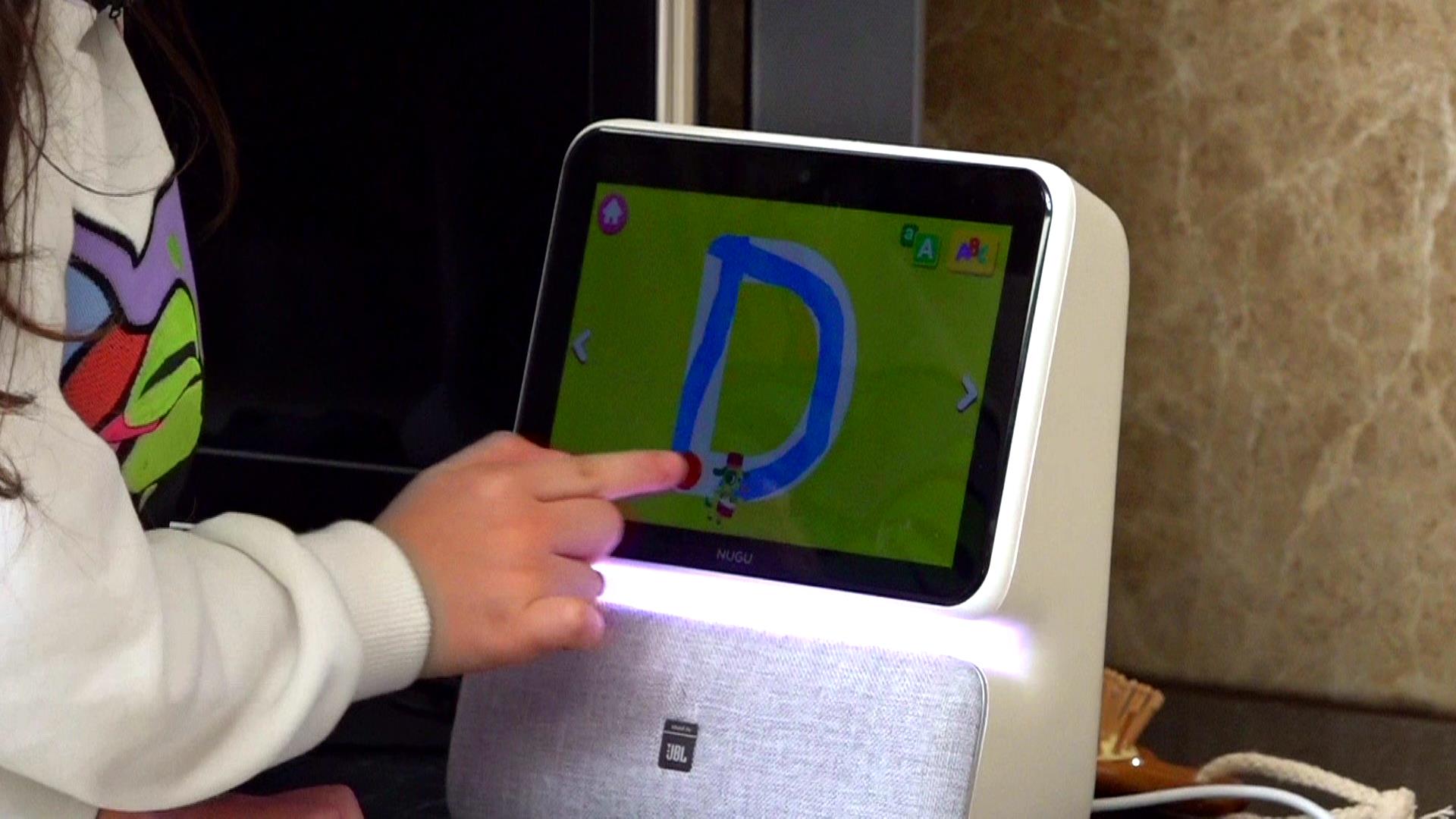 나은이와 건후 남매가 능숙하게 다룬 ‘누구 네모’는 영상 및 화면 기반으로 어린이들의 놀이와 학습에 최적화된 스피커이다.