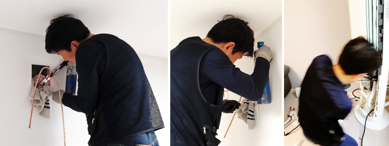 에어컨 설치 과정은 기존에 사용하던 파이프 연결을 위한 에어컨 분리 작업과 실외기 설치 공간 확보 및 연결, 서브 에어컨 설치 등 능수능란한 전문가답게 하나 하나 작업을 하셨다.