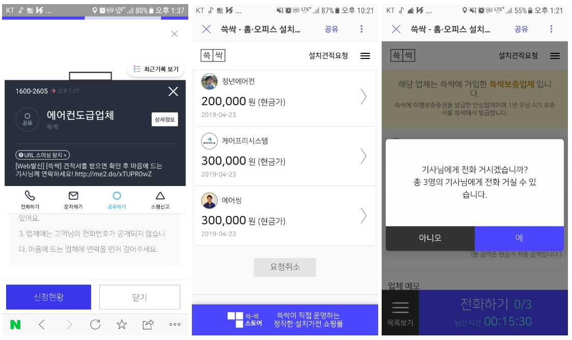 그렇게 작성한 정보에 맞는 설치기사분들이 견적을 올리고, 난 비교만 하면 됐다.