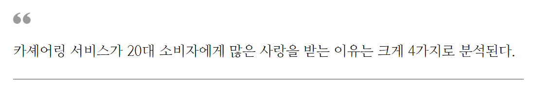 여기에 대중교통 연계가 강화되며,차량 구매를 꺼리는 20대들에게 다양한 교통 대안이 되고 있다. 특히, 비행기/기차/고속버스 등 활동성이 좋은 20대들에게 업무외에도 여행과 같은 라이프스타일에도 카셰어링이 녹아들고 있어 사용률이 늘어나고 있다.