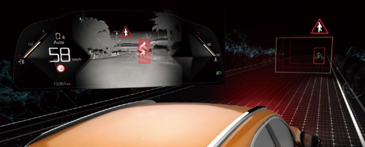 이 시스템은 프론트 그릴에 장착된 적외선 카메라가 100m 내 사물이나 생물을 감지해 위험 정도에 따라 12.3 인치의 디지털 계기판에 감지 대상을 노란색 또는 빨간색 선으로 강조하고 충돌 위험 시 경고음을 울려 운전자가 적절히 대응하도록 돕는다.