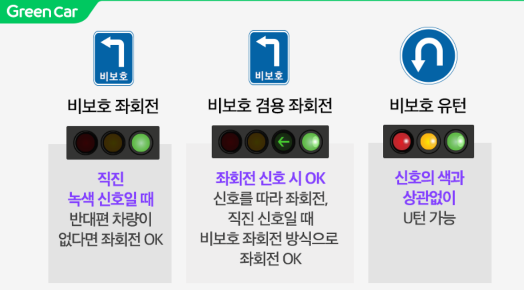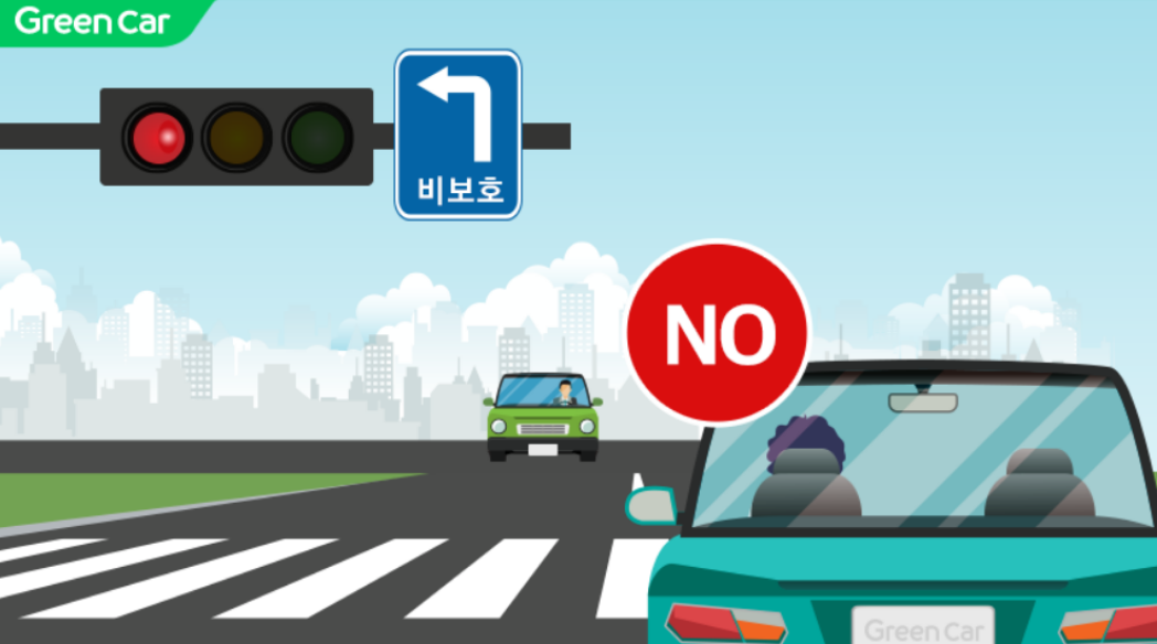 1. 비보호 좌회전 직진 녹색 신호일 때 반대 차선에 차량이 오지 않으면 좌회전 OK!