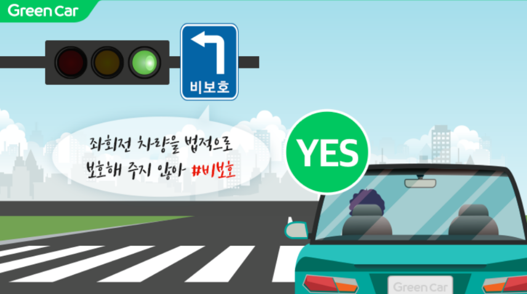 대부분의 사람들이 비보호 좌회전은 반대 차선에 차량만 없다면 진행 가능한 것으로 오해하고 있지만 직진 신호인 녹색불에서만 좌회전이 가능하다는 사실! 그린피플은 알고 계셨나요?