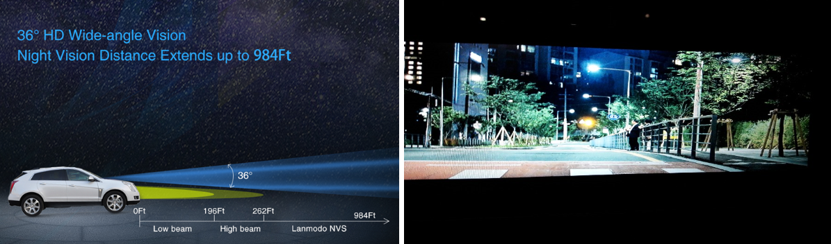 기존 제품들이 적외선 카메라를 이용하다보니, 가시거리가 100m를 넘지 못 하고 흑백으로 정보를 제공하는 점을 뛰어넘는 요소이다. 운전이 미숙한 사람들에게 더욱 직관적인 도움을 준다.