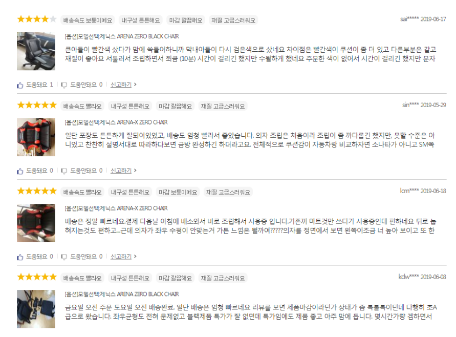 타 브랜드의 게이밍 의자도 비슷한 특징을 장점으로 강조하고, 제품의 우수성을 강조했다. 단지 차이가 있다면 가격 차이가 조금씩 달랐을 뿐....