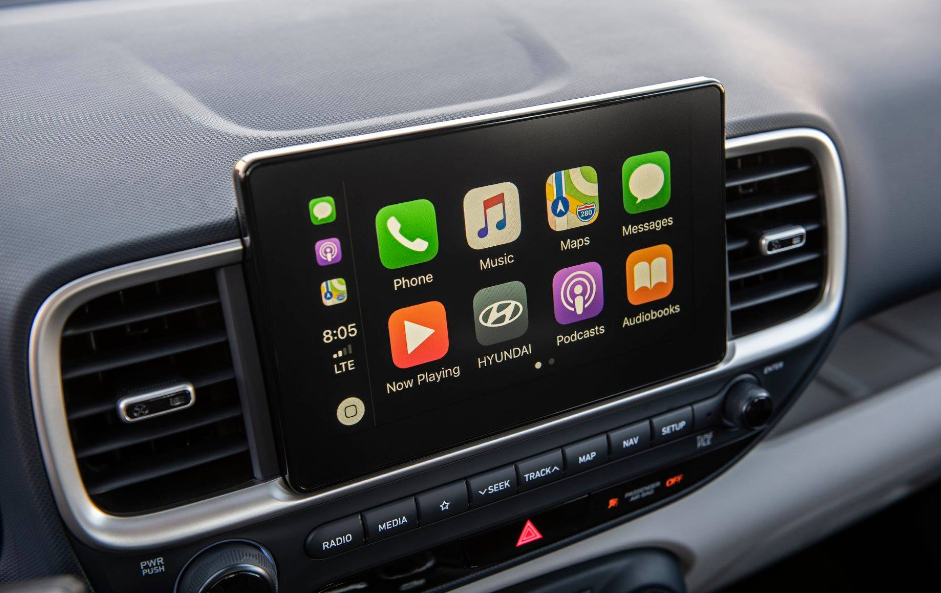 베뉴는 센터페시아에 세련된 디자인의 심리스(Seamless, 외곽 프레임이 없는) 8인치 멀티미디어 시스템을 적용하고 전화, 길안내, 팟캐스트 등의 스마트폰 기능을 차량 디스플레이 화면에서도 이용할 수 있는 안드로이드 오토(Android Auto)와 애플 카플레이(Apple CarPlay)를 모두 지원해 사용 편의성을 높였다.