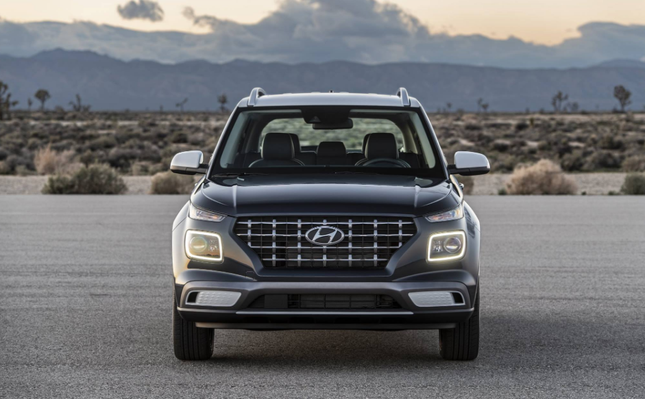 전면부는 상단에 방향지시등, 하단에 사각형 모양의 LED 주간주행등(DRL, Dayti me Running Lights)과 상/하향등을 배치한 분리형 헤드램프와 함께 독창적인 격자무늬의 캐스케이딩 그릴로 베뉴만의 개성을 강조했다.