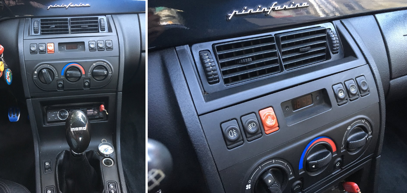 대시보드는 보디색과 같은 패널이 지나 가는데 가운데 피닌파리나의 사인이 있고 계기판 자체가 굉장히 고풍스럽습니다.