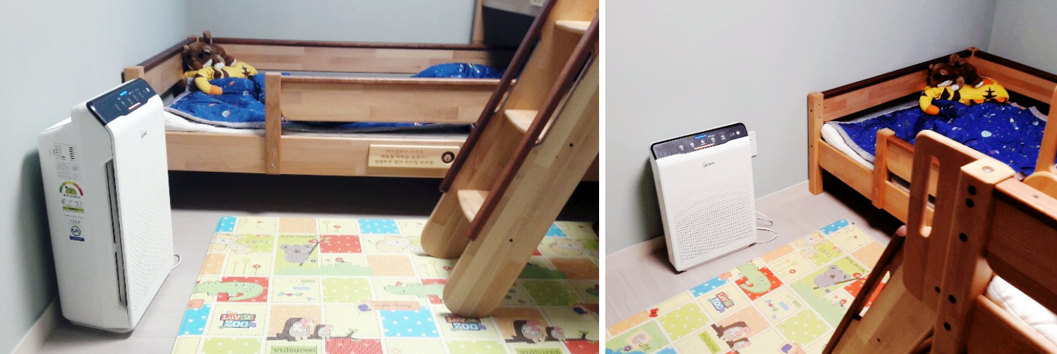 기존 2대는 아이방과 거실에 비치하면, 다음으로 활동이 많은 '침실' 관리가 필요하고 어려웠다.