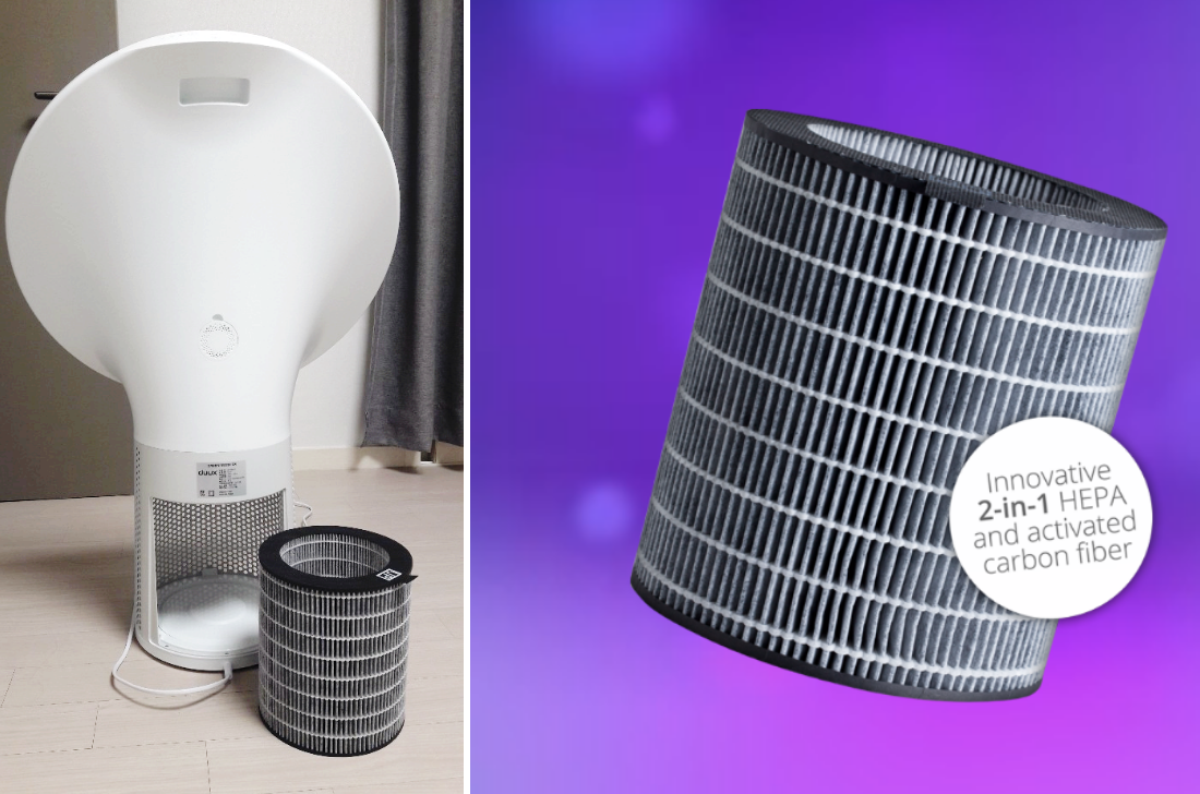 마지막으로 활성탄소 필터가 연기, 곰팡이, 화학물질과 관련된 휘발성 유기 화합물 (VOC) 등의 유해가스와 유독물질을 필터링 한다.