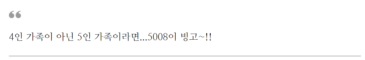 그 중에서도 푸조 5008은 경쟁모델에 비하여 패밀리카로서 탁월한 장점이 명확함에도 그 강점이 제대로 어필되지 않은 거 같다.