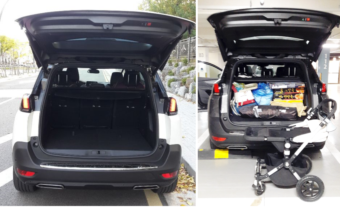 이번 시승에서 기본 트렁크공간만을 활용하면서 쌍둥이용 유모차 1개, 여행용 캐리어 2개, 접이식 그늘막텐트 1개 등 짐의 수량과 부피가 상상 이상으로 많았지만 적재가 가능했다.