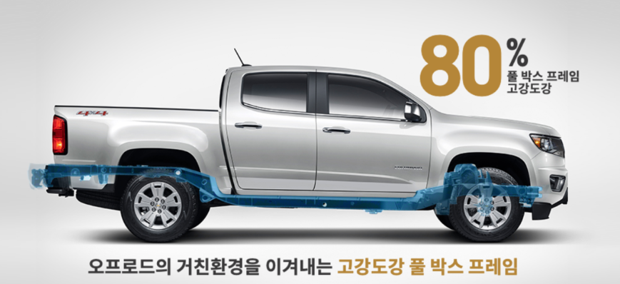 뿐만 아니라 콜로라도는 국내법상 화물차로 분류되기 때문에 300마력이 넘는 고성능 3.6L 대배기량 엔진을 탑재하고도 연간 자동차세는 2만8,500원으로 매우 저렴하다.