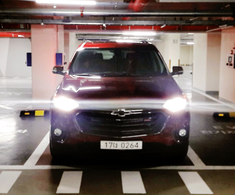 실제로 좁은 주차공간에서는 트래버스와 같은 대형 SUV가 아니라 중형세단이라고 하여도 다 그렇게 주차하니까...