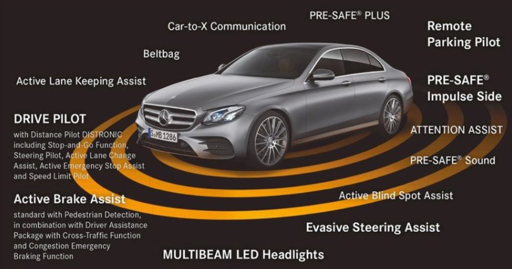특히, 탑승자 사고 예방 안전 시스템 프리-세이프®(PRE-SAFE®) 기술을 지난 2002년 최초로 내놓으며 수동적, 능동적 안전의 경계를 허물고 자동차 안전의 새 시대를 열었다는 평을 받고 있다. 이밖에도 1970년대 초부터 메르세데스-벤츠는 안전 실험 차량이라고 불리는 ESF(Experimental Safety Vehicle) 차량 개발을 통해 ‘무사고 주행’이라는 비전에 한발 다가서고자 설계된 다양한 장치들을 양산 차량에 접목해왔다.