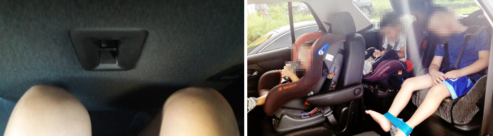 아직 아이들이 어려 3열에 카시트를 2개를 설치해야 할 경우가 있는데, 그 때에도 카시트 고정 및 아이의 머리가 루프에 닿을 걱정은 안 해도 된다.