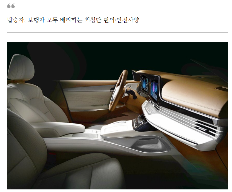 아울러 인체공학적인 플로팅 타입의 전자식 변속버튼(SBW)과 고급 가죽 소재가 적용된 센터콘솔은 편안하고 직관적인 UX(사용자 환경)를 완성했다.