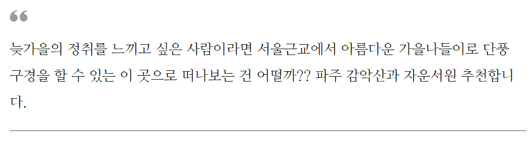 늦가을 단풍과 출렁다리로 볼거리가 풍부한 파주 감악산, 이율곡 선생과 신사임당이 살아 숨쉬는 사적 525호 자운서원을 높은 하늘을 조금 더 가까이 느낄 수 있는 캐딜락 에스컬레이드를 타고 온 이야기를 정리해본다.