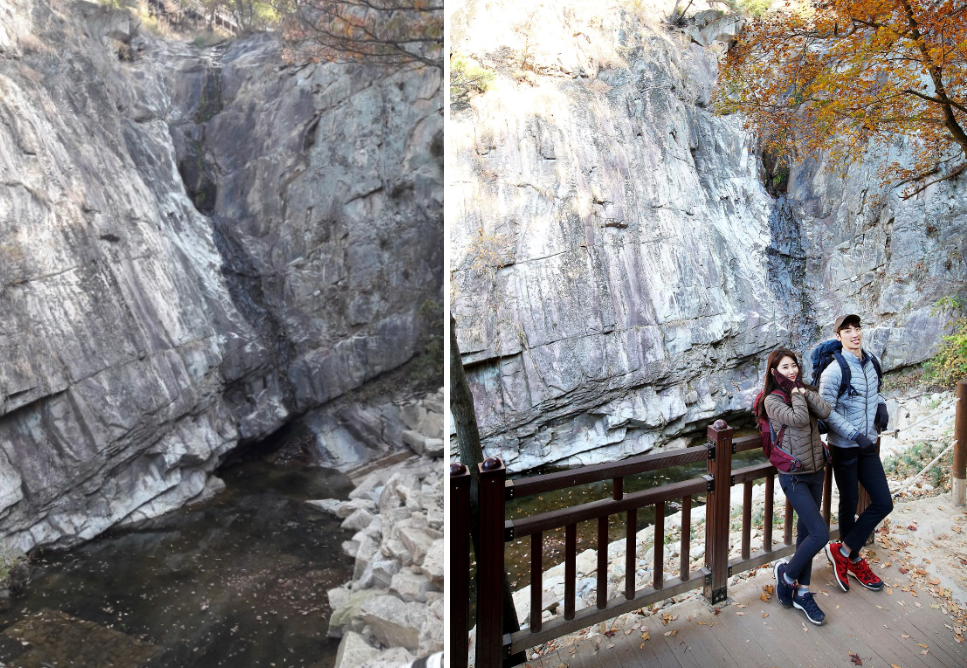 길게 뻗은 출렁다리를 건너면 운계폭포가 나옵니다. 최근 가뭄으로 수량이 줄어서 폭포 대신에 물이 흐른 흔적만 남아 있는 상황였습니다.