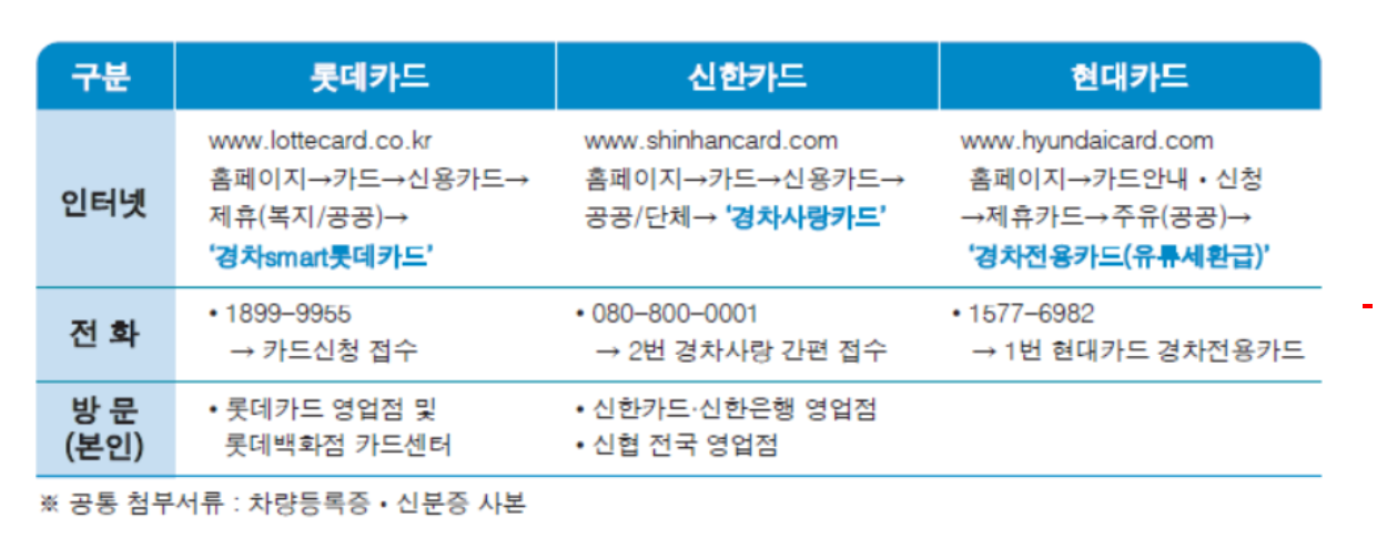 경형차 환급용 유류구매카드(신용·체크)를 신청·발급받아 주유 시 이를 이용하여 결제하면