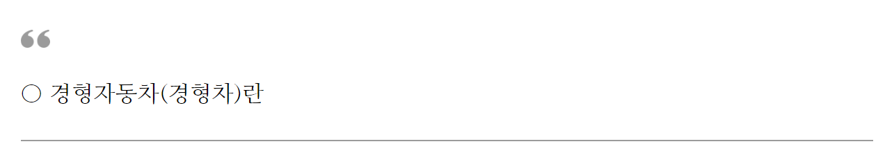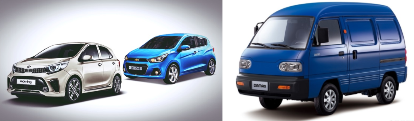 「자동차관리법」제3조에 따른 승용자동차 및 승합자동차로서 배기량 1,000시시 미만, 길이 3.6미터, 너비 1.6미터, 높이 2.0미터 이하인 것 * 예시: 모닝, 레이, 마티즈(스파크), 아토스, 티코, 다마스 등