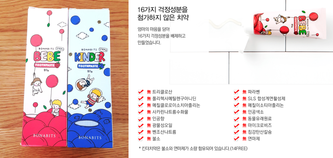 특히, 아이들의 치약은 들어가 있지 말아야 할 것과 꼭 있어야 할 성분이 명확해 정말 좋은 치약을 잘 선택하는 것이 중요하죠.