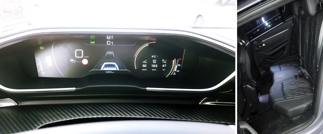 푸조 508 모델과 같은 경쾌함과 시원한 느낌이 조금 적은 느낌이 들었다. 물론, 시승한 시기에 비도 많이 오고 도로가 미끄러워서 조심스럽게 운전한 경향이 있지만, 차량 자체의 민첩함은 조금 떨어지는 걸로 느껴졌다.
