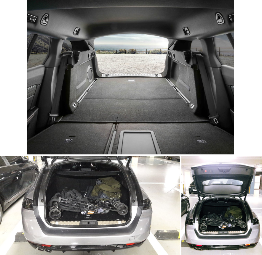 뉴 푸조508 SW는 트렁크 공간을 최대한 늘려 뛰어난 공간활용성을 자랑한다. 기본 트렁크용량은 530ℓ로 세단모델보다 43ℓ 가량 더 넓다.