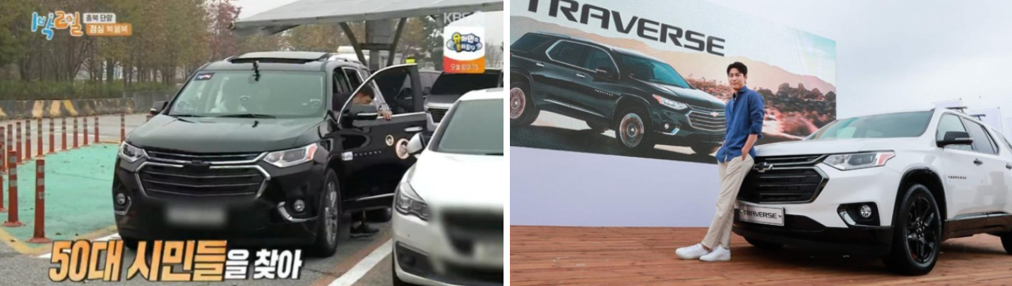마지막으로 드라마가 아닌 예능에서 대박 조짐을 보인 자동차 브랜드 PPL이 있습니다. 새로움 멤버들과 함께 시즌 4로 돌아온 KBS 2 '1박 2일'의 쉐보레 트래버스입니다.