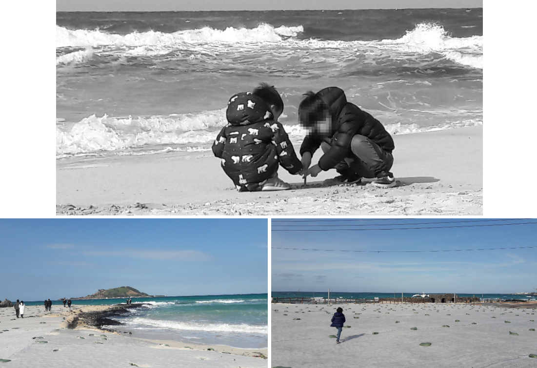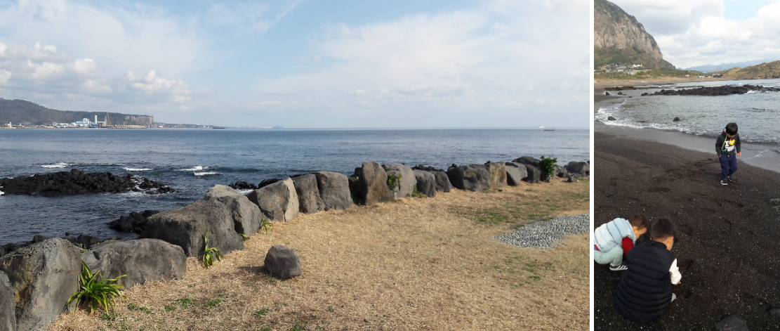 그래도 제주도의 고운 모래와 아름다운 파도로 유명한 중문해수욕장이나 협재해수욕장/곽지해수욕장과는 다른 이색적인 모습이 좋은 추억이 될 거라 믿어요.