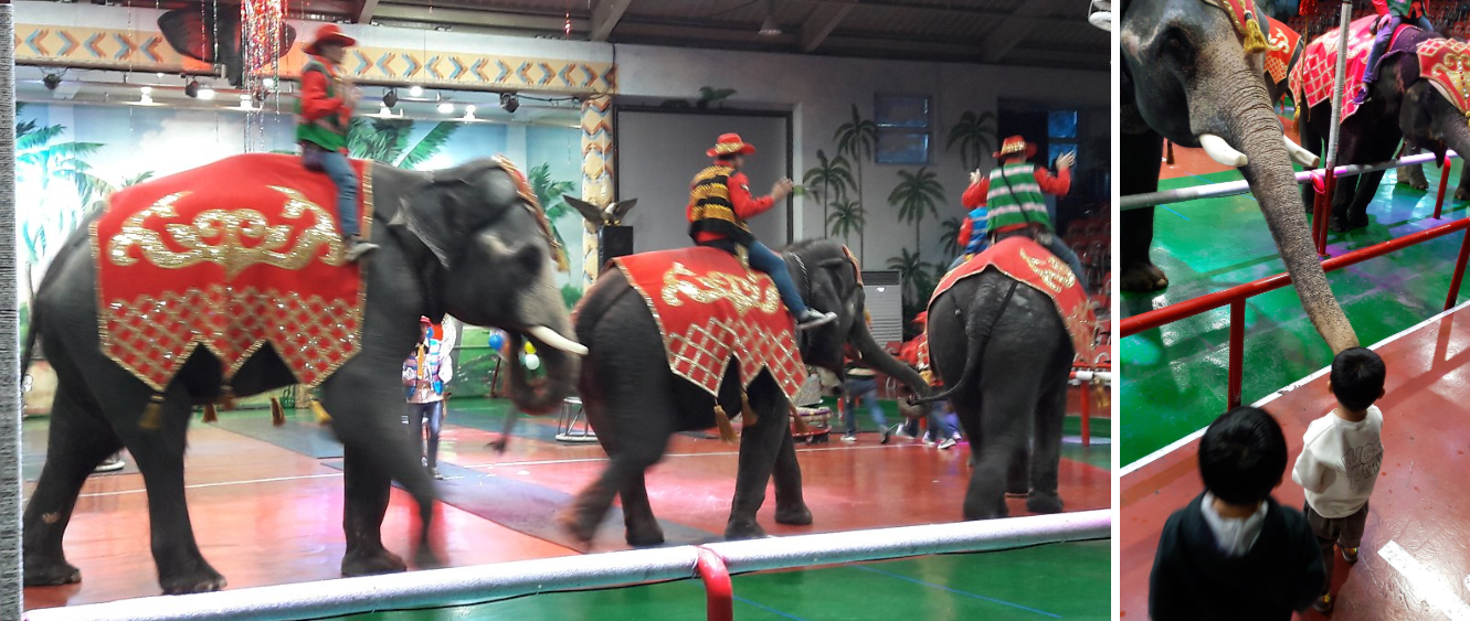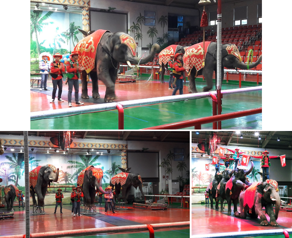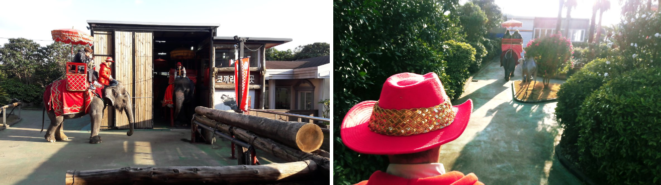 코끼리에게 먹이를 주는 체험 시간과 다양한 공연의 일부에 참여해 코끼리를 바로 옆에서 볼 수도 있고요.
