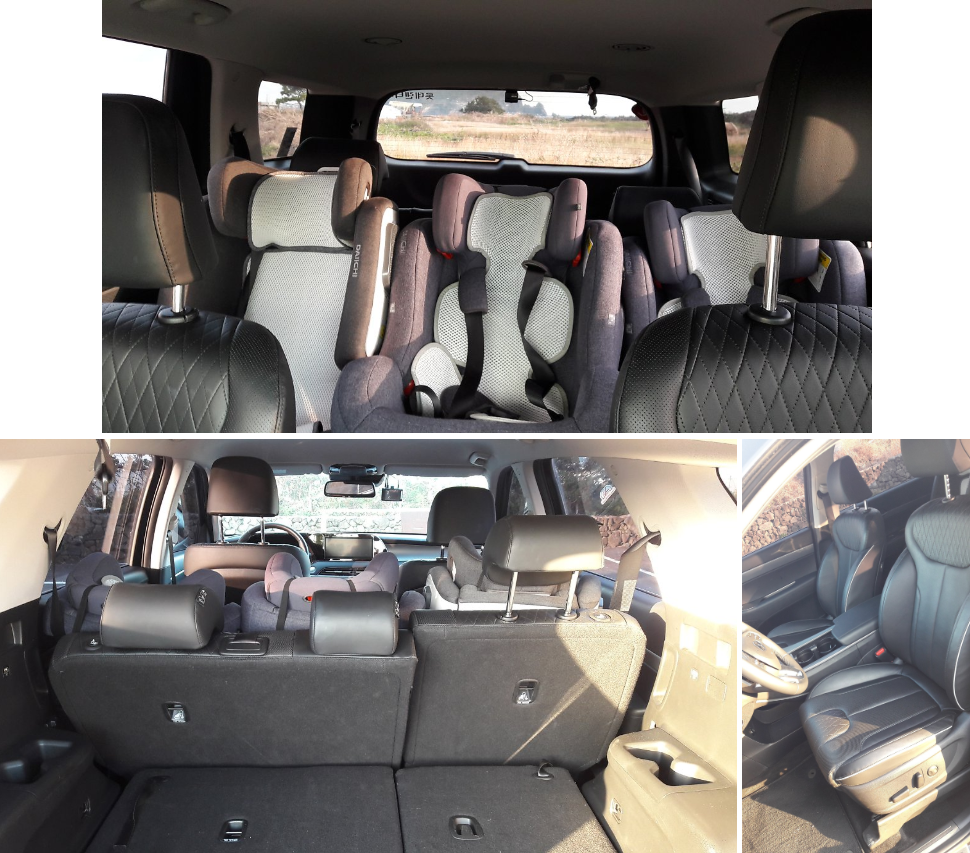 그러다보니, 2열에 카시트 3개를 설치하기 위해서 가장 중요한 것이 팰리세이드의 위엄을 나타내는 전고와 전장이 아닌 전폭이 중요한 부분인데, 전폭은 카시트 3개를 소화하기 힘들었다.