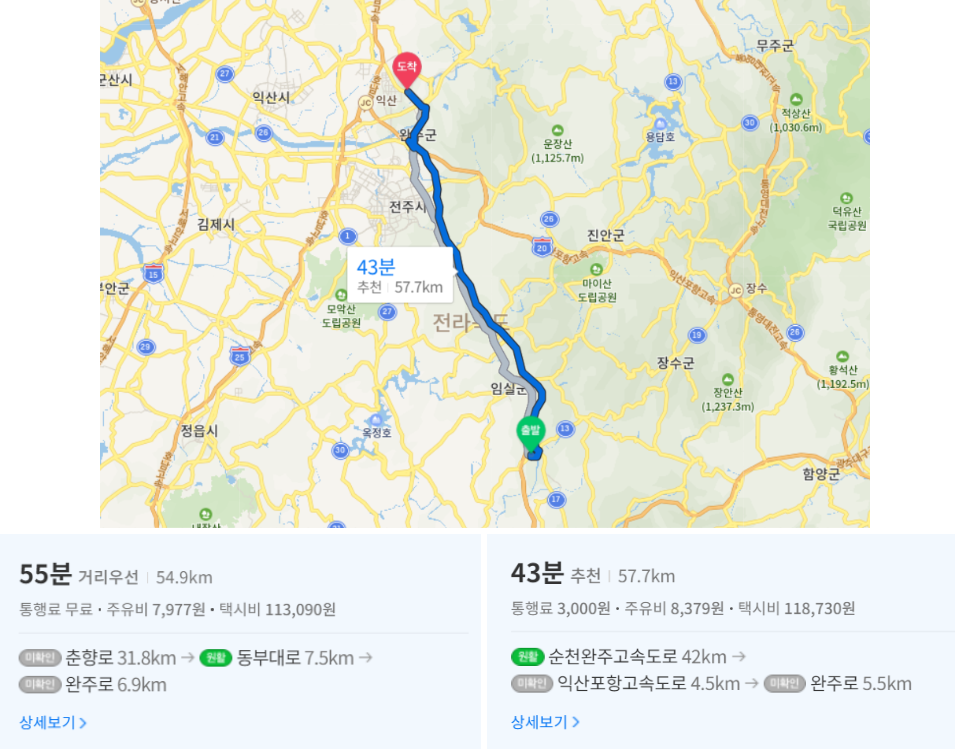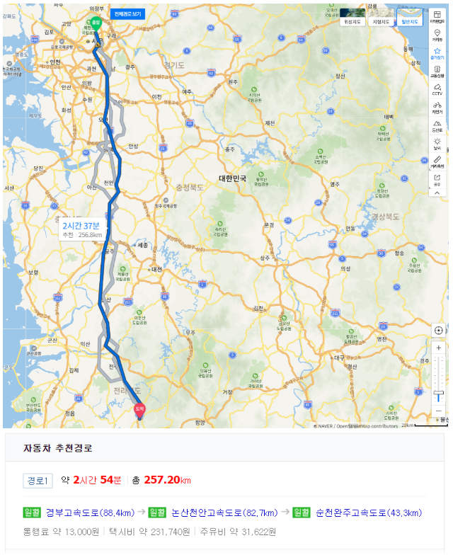 논산천안고속도로와 순천완주고속도로에서는 정규속도를 낼 정도의 교통량이었지만, 전날 비가 많이 오기도 하였고 터널구간이 많다보니 안전운전 하는 차량들이 많았다.
