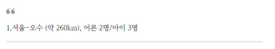 이번 시승에는 어른 2명/아이 3명이 동승하였고, 토요일 오전 11시에 출발하는 나름 극한 조건의 시승이 되겠다.