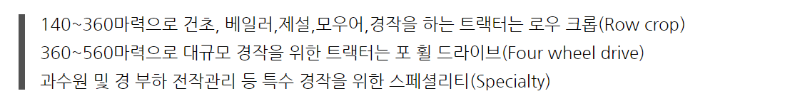 자동차처럼 세그먼트 구분하는 트랙터,마력으로 구분하는 이유는?? 본문