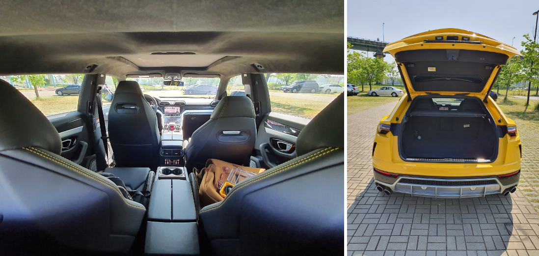 고급스러운 가죽시트와 스포츠카보다는 편안한 시트포지션은 람보르기니에서 데일리카라고 강조하는 이유를 알 수 있는 안락한 쿠션을 보였다. 여기에 다양한 안마기능까지....