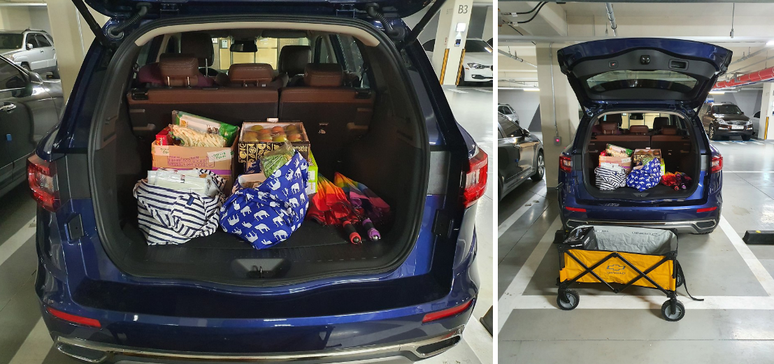 뭐 이 부분이 중요한 부분은 아니지만 넉넉한 트렁크 공간을 100% 활용하기에는 트렁크 입구와 높이가 약간 아쉬움이 있었다.