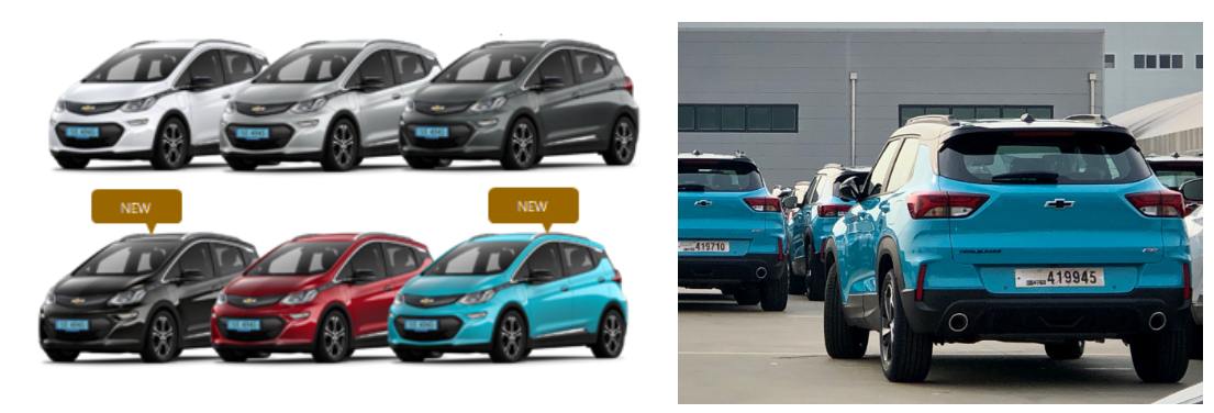 새롭게 추가되는 색상은 고급스럽고 세련된 미드나이트 블랙과 쉐보레 핫 SUV인 트레일블레이저에서 가장 큰 사랑을 받고 있는 트렌디한 이비자 블루가 추가된다. 이로써 볼트 EV는 스칼렛레드,퓨어화이트, 메탈틱그레이, 스위치 블레이드 실버 4종을 포함한 총 6가지의 컬러를 선택할 수 있게돼 그 어떤 전기차보다 감각적인 디자인을 갖추게 된다.