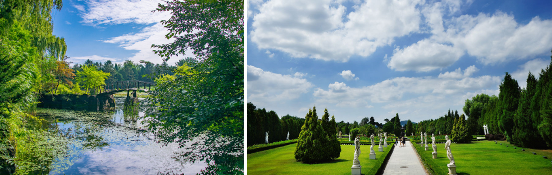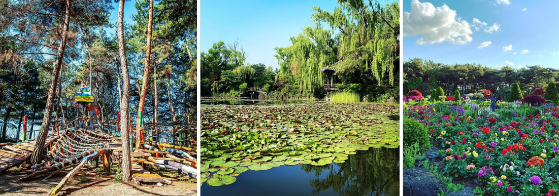 벽초지수목원은 자연을 좋아하는 설립자와 예술 조경을 꿈꾸는 화가의 만남으로 탄생한 공간으로, 눈부시게 화려한 여왕의 정원, 능수버들과 수양버들이 시원하게 늘어선 연못, 조각 공원과 아트 조경 등 잠시 한 폭의 풍경화 속에 들어온듯한 느낌을 준다.