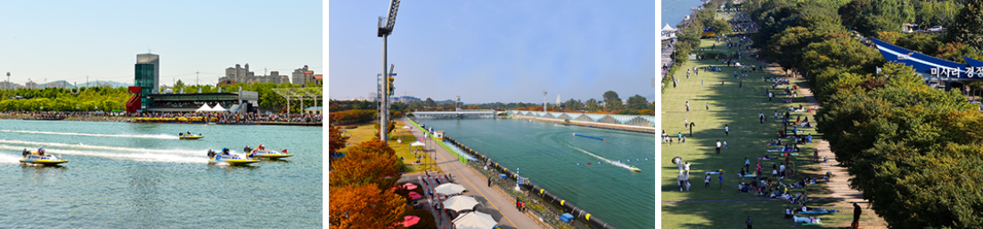 카누, 조정 경기를 위해 만들어진 미사경정공원은 대형 조정호수를 중심으로 다양한 스포츠 시설(잔디 축구장, 족구장, 수면 등)과 편의 시설 및 놀이 시설이 마련되어 있어 즐길거리가 다양하다.