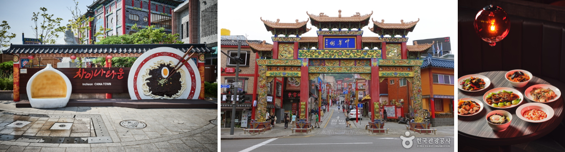 인천 차이나타운에는 우리나라 최초의 짜장면집으로 유명한 공화춘 등 다양한 중국 음식점이 있어 깐풍기, 양꼬치, 공갈만두, 짬뽕 등 중국 음식을 맛볼 수 있다.