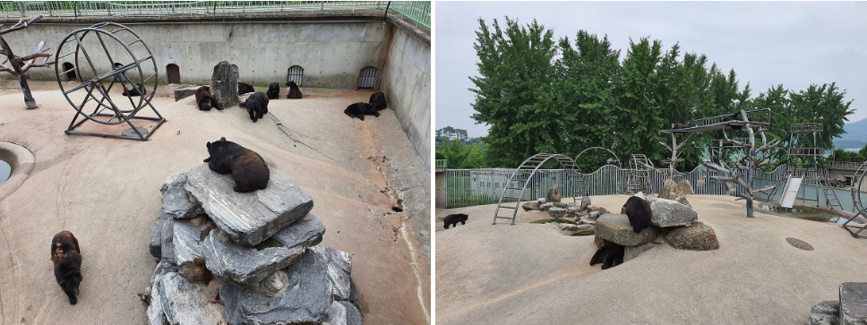 높은 곳에 아슬아슬하게 올라가 잠들어 있는 곰부터 챗바퀴 돌리며 운동하는 곰, 돌 위에서 대(大)자로 누워있는 곰 등 다양한 자세의 곰들을 볼 수 있었다.