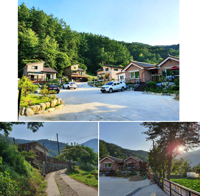 어렵게 확인한 천안의 광덕산 산아래호두나무 펜션이 6월 말에 이용이 가능했고, 각 동이 독채로 이루어져 주변 사람들과 동선이 겹칠 염려가 없었다.