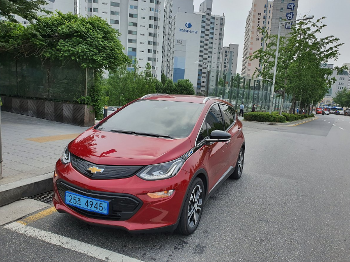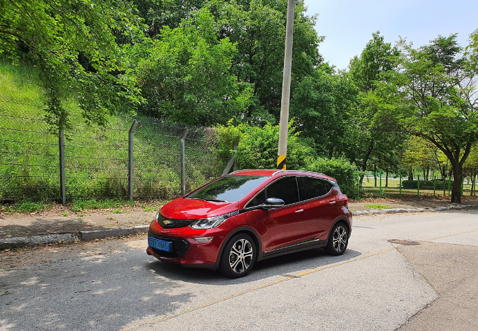 이번 신형 모델에 쉐보레 형제인 트레일블레이저 TV 광고 속 컬러 이비자 블루가 새롭게 추가되었다고 들어 살짝 기대했는데, 시승하게 된 볼트 EV는 스칼렛 레드 컬러였다. 시승한 날은 특히나 햇볕이 쨍하고 날씨가 무더웠는데, 그 날과 잘 어울리는 컬러였다.