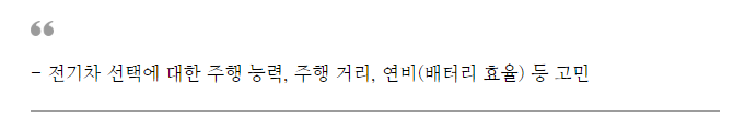 사실 전기차가 첫 등장했던 몇 년전만 해도 주행거리가 200km가 되지 않아 전기차는 충전하다 끝나는 거 아니냐, 주행 중 방전으로 멈추는 거 아니냐는 말들이 많았고, 나 또한 전기차를 이용하는 일은 없겠다 싶었다.